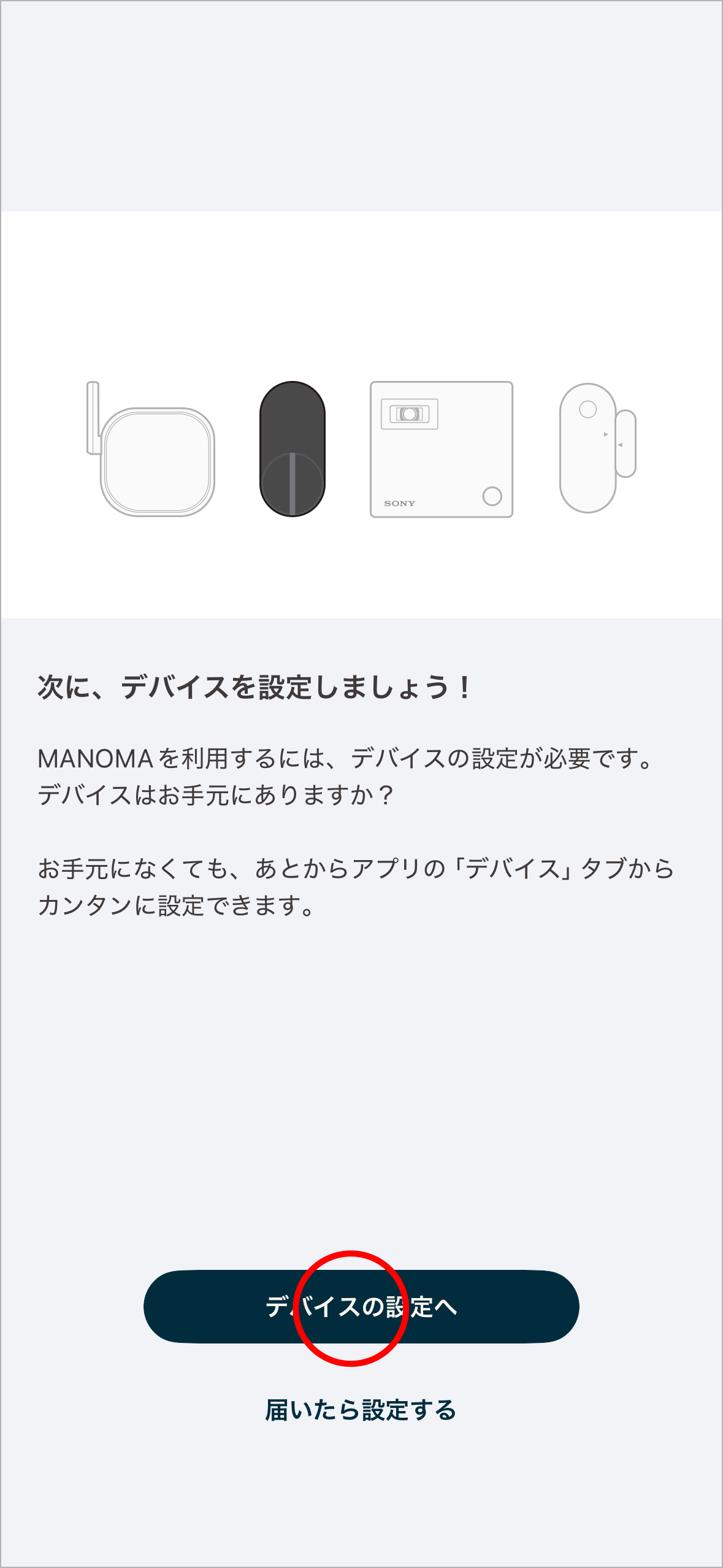1デバイス設定画面でデバイスの設定へをタップします。